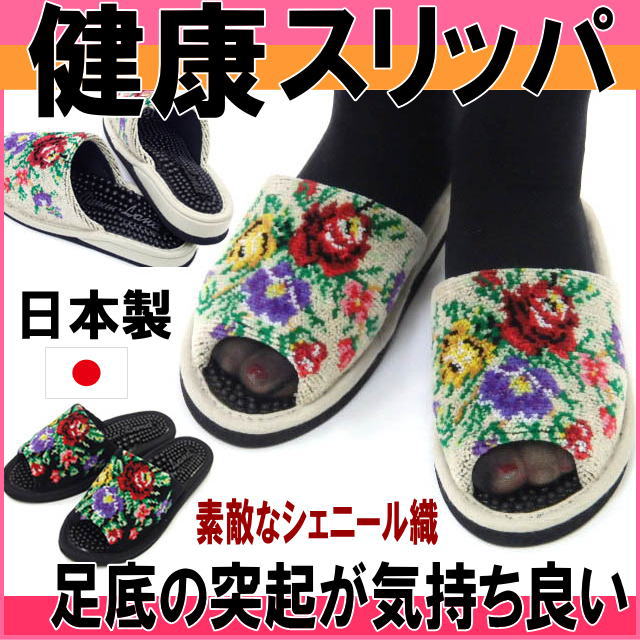 ■健康スリッパ 足つぼ スリッパ おしゃれ レディース かわいい ルームシューズ 日本製 健康サンダル 薔薇雑貨 薔薇柄 姫系 バラ ローズ