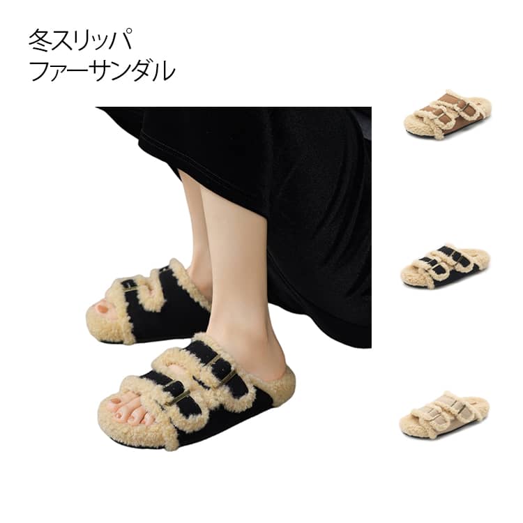 ■サンダル 冬スリッパ ファーサンダル レディース 秋冬 ボアサンダル スリッパ ふわふわ 保温 もこもこ あったか フラットソール 疲れにく