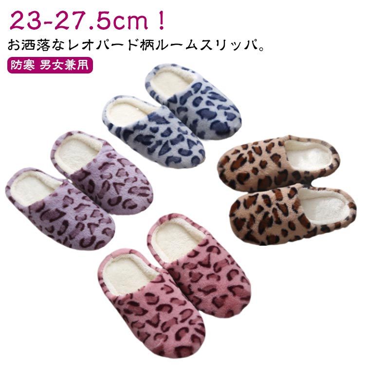 ■上履き もこもこ オフィス スリッパ 職場 静音 メンズ 防寒 室内履き 冬用 レディース 来客 ヒョウ柄 部屋 ルームシューズ ルームシュー