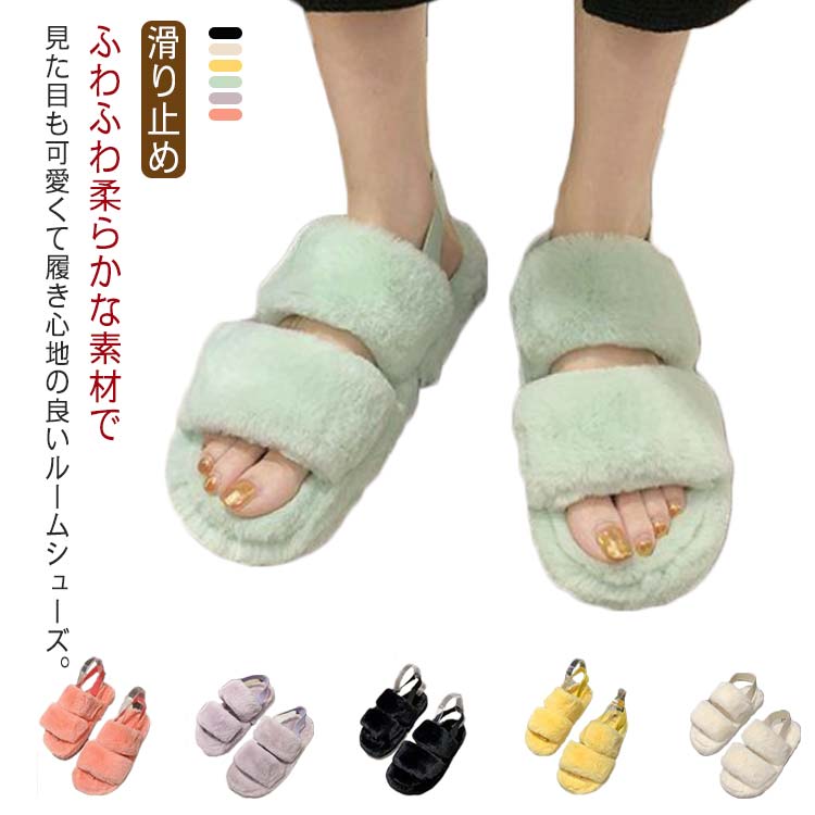 ■スリッパ もこもこ レディース ルームシューズ 冬 サンダル バックストラップ 脱げにくい ふわふわ あったか 履きやすい 部屋履き 冷え対