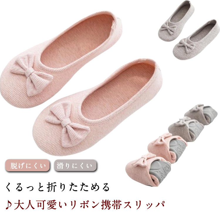 ■スリッパ 転倒 折りたたみ ゴム底 卒業式 リボン スリッポン 予防 洗える 入学式 レディース 学校 保護者 ルームシューズ かかと付き 携