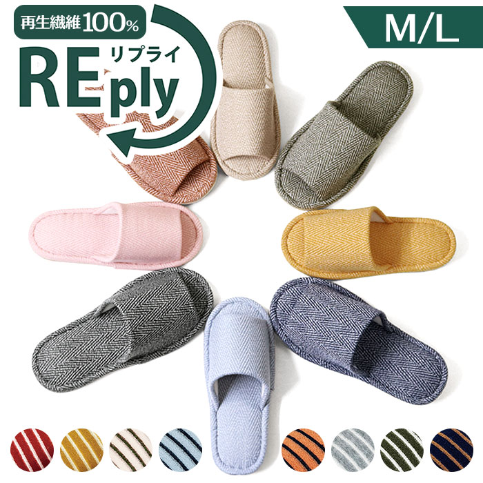 ■スリッパ 室内 おしゃれ 通販 REply 再生繊維 前あきスリッパ スタンダードスリッパ 前開きスリッパ ルームスリッパ 来客用 室内履き ヘ
