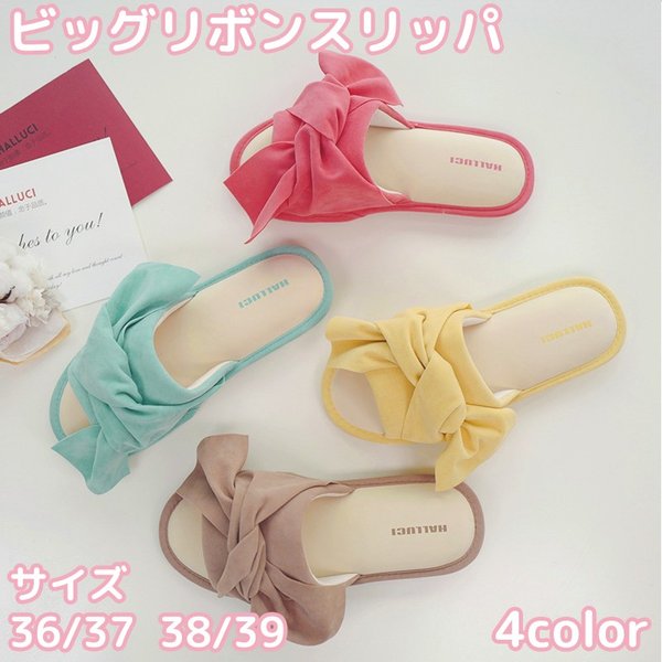 ■ビッグリボン スリッパ おしゃれ 来客用 室内用 レディース 女性 ルームシューズ 通気 滑り止め 柔らか プレゼント 母の日 かわいい