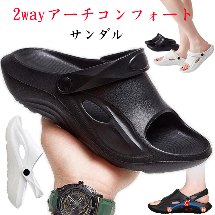 ■痛くない メンズ 2way サンダル スリッパ バススリッパ アーチサポート ベランダサンダル 防水 軽量 厚底 履きやすい 疲れにくい オフィ