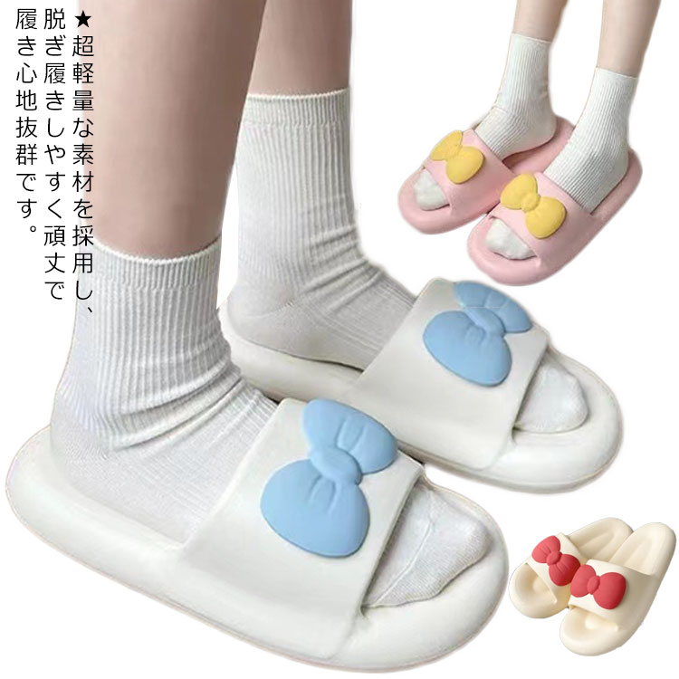 ■送料無料 柔らか軽量サンダル シンプル 厚底 リボン柄 前開き スリッパ 抗菌 滑り止め 男女兼用 春 夏 オールシーズン おしゃれ ルームシ