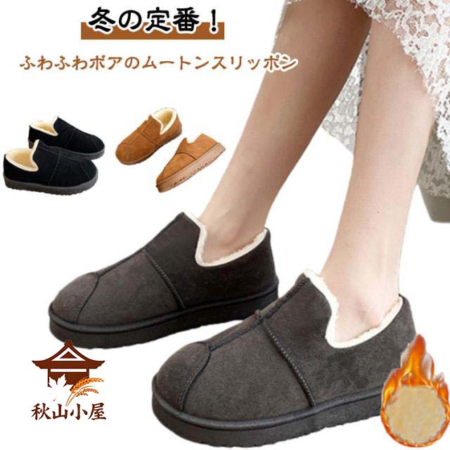 ■スリッポン ムートンスリッポン フラットシューズ レディース スリッパ 女の子 ボア ぺたんこ 冬 靴 裏起毛 冬の定番 フラットブーツ シ