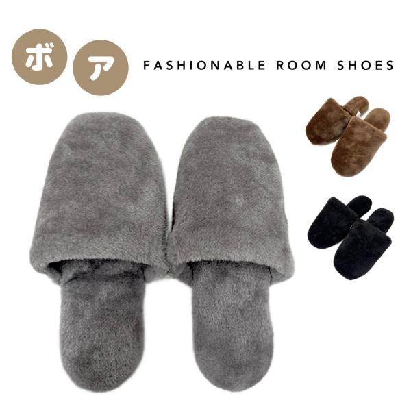 ■スリッパ 冬 暖かい ボア おしゃれ 無地 グレー ブラウン ブラック シンプル シック お買い得