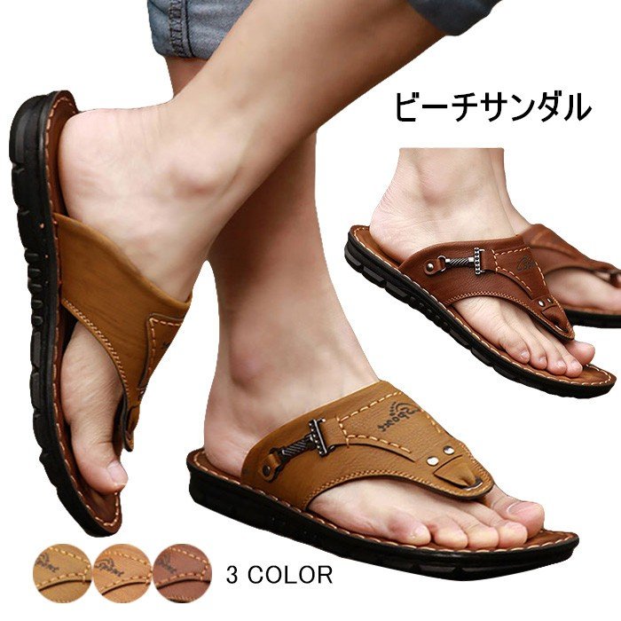 ■ビーチサンダル メンズ PUレザー スポーツサンダル スリッパ ファッション フラットシューズ 疲れにくい 滑り止め オシャレ 2017夏新作