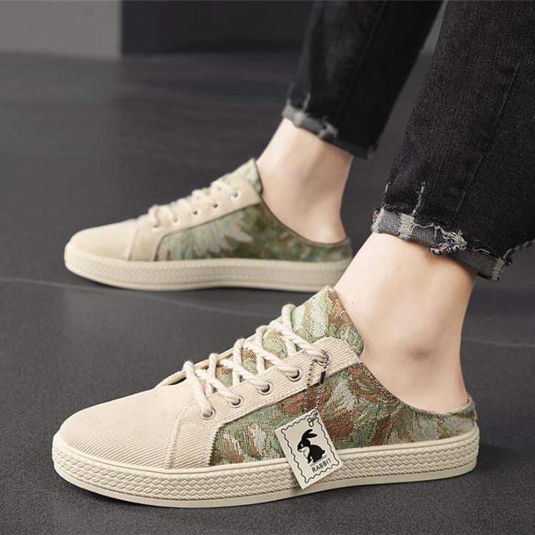 ■【ポイント10倍!】かかとなし スニーカー メンズ スリッポン おしゃれ レースアップ スリッパ メッシュ 通気 軽量 カジュアル 履きやす