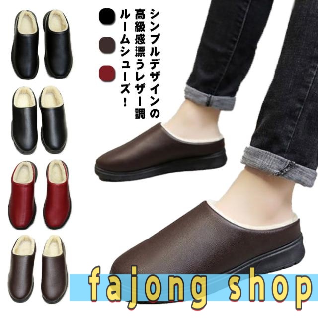 ■もこもこ レザー 冬 あったか ボア 部屋 室内 スリッパ 軽量 かわいい 冷え対策 レディース ルームシューズ 滑り止め メンズ 冷え性 防