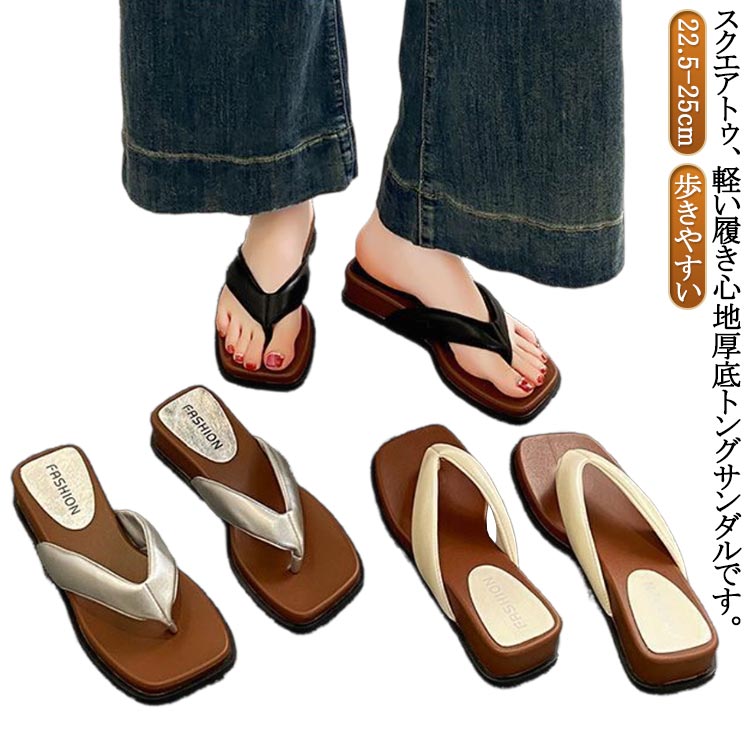 ■トングサンダル 厚底 スクエアトゥ サンダル レディース スクエアトゥ スリッパ トング トング 厚底サンダル サンダル 痛くない 3.5cm 歩