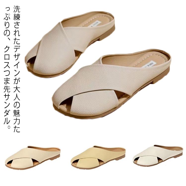 ■送料無料 サンダル フラット レディース ベージュ スリッパ 靴 歩きやすい PUレザー ルームシューズ ローヒール 大人 上品 室内 美脚 ナ