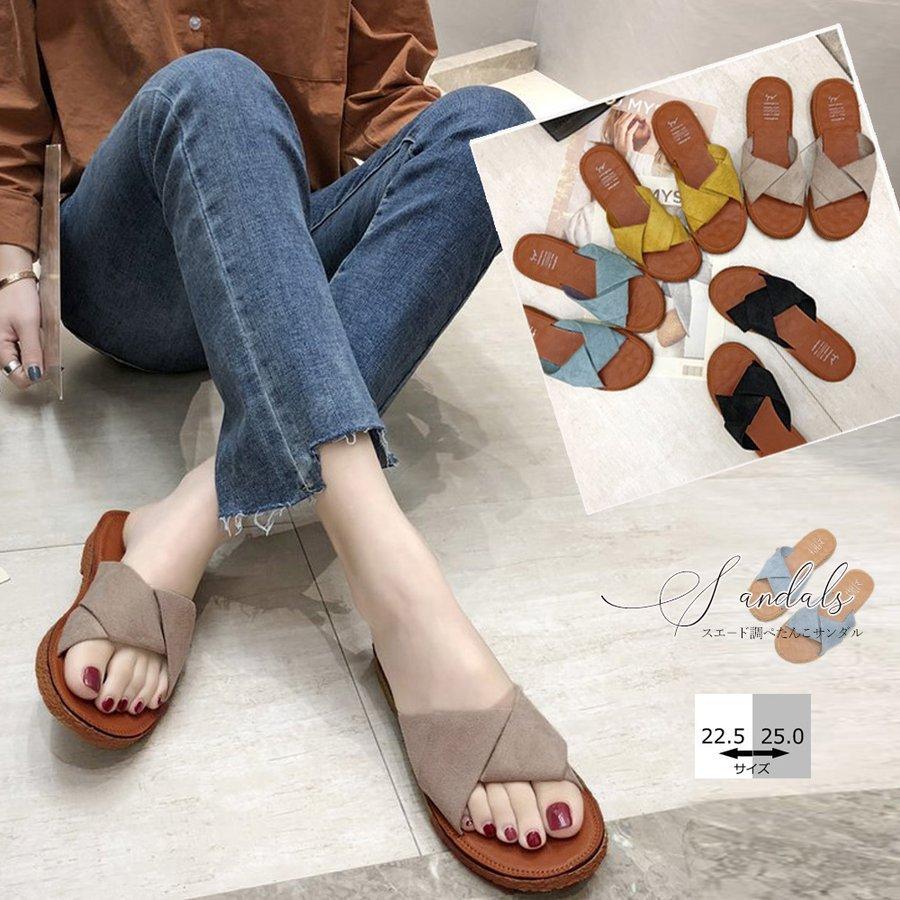 ぺたんこサンダル レディース フラット クロスストラップサンダル コンフォート ビーチサンダル スエ?ド調 スリッパ【ネコポス可】