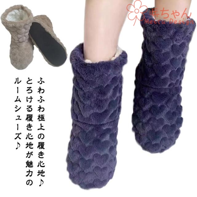 ■ルームシューズ 冬 ルームブーツ 厚底 レディース メンズ スリッパ ブーツ型 かかと付き もこもこ ふわふわ ボア あったか マイクロファ