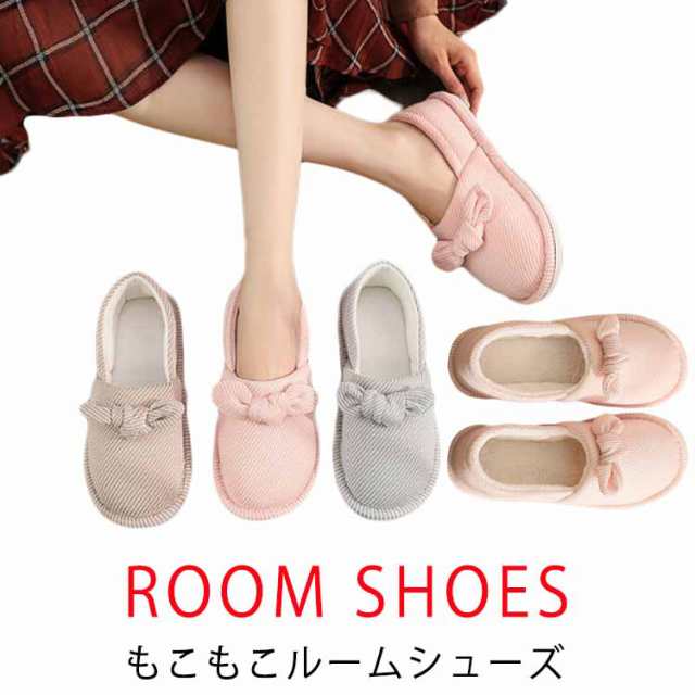 ■ボアスリッパ おしゃれ 滑り止め あったか ルームシューズ 冬 スリッパ 暖かい もこもこ 可愛い ふわふわ リボン ボア ルームスリッパ レ