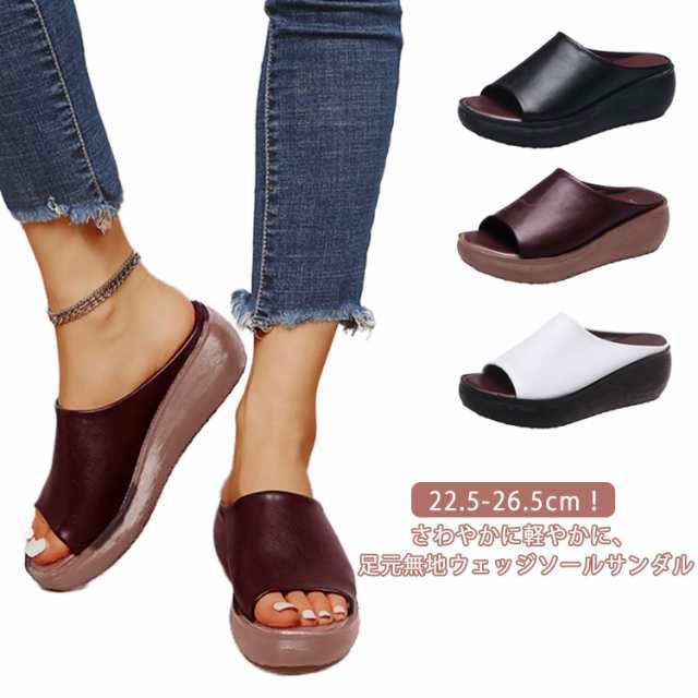 厚底サンダル レディース ウエッジソール サンダル ミュールサンダル シューズ 靴 サボサンダル オフィス スリッパ 厚底 歩きやすい オープントゥ サボ サンダル サマーブーツ 疲れにくい 甲高 幅広 大きいサイズ 可愛い 大きいサイズ 黒 白 母の日