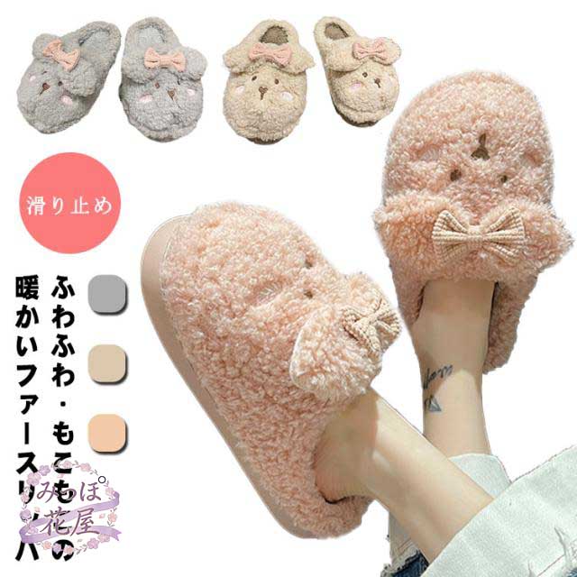 ボアスリッパ おしゃれ 滑り止め あったか ルームシューズ 冬 スリッパ 暖かい もこもこ 可愛い ふわふわ リボン ボア ルームスリッパ レディース 動物 キャラクター 柔らかい 部屋履き 冷え対策 寒さ防止 軽量 女性 疲れない 室内