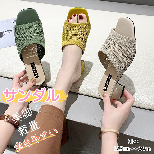 ■夏新作 サンダル スポーツサンダル 厚底 無地 サンダル メッシュ ニット 厚底ヒール ウェッジソール スリッパ 足なり形状 美脚効