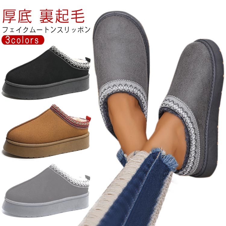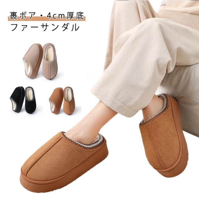 厚底 サボサンダル スリッパ レディース ムートン風 かかとなし ボア付き 秋冬新作 スエード調 クロッグサンダル ルームシューズ ファースリッパ やわらかい 室内履き 防寒 あったか おしゃれ
