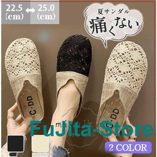 サンダル レディース 履きやすい レース スリッパ 透かし雕り 花柄 リネン おしゃれ ローヒール 夏 痛くない 美脚 疲れない 可愛い 20代 30代 40代