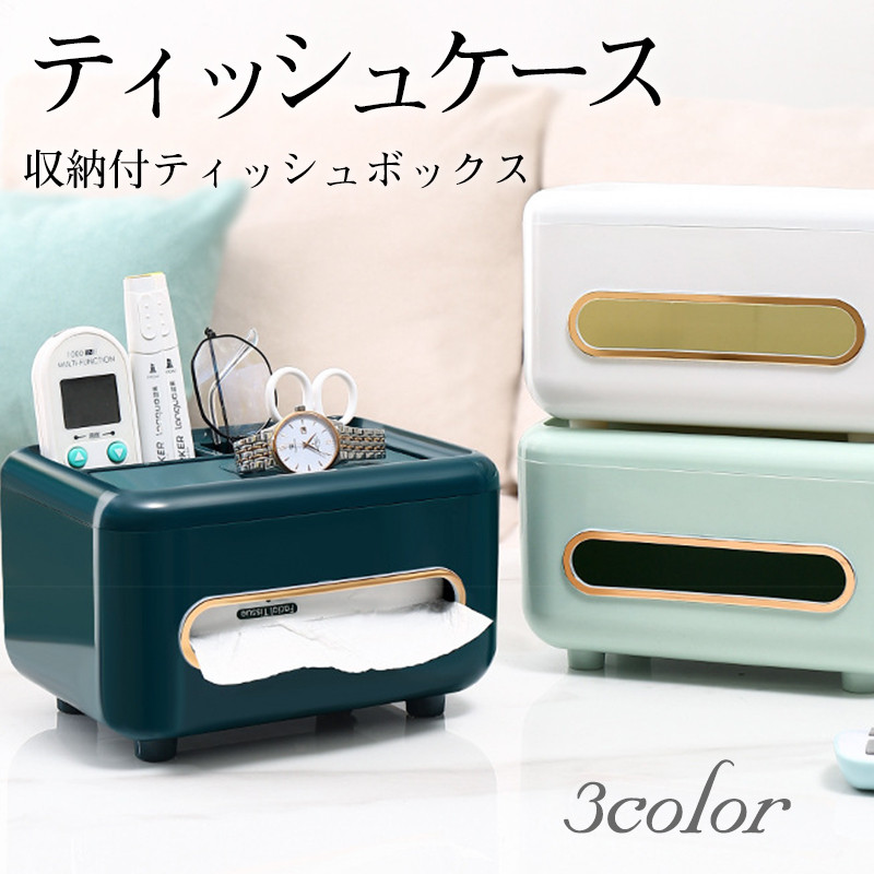 ■ティッシュケース 収納付ティッシュボックス コンパクト 収納ケース 化粧箱 リモコンラック 多機能 スマホスタンド 小物入れ シン