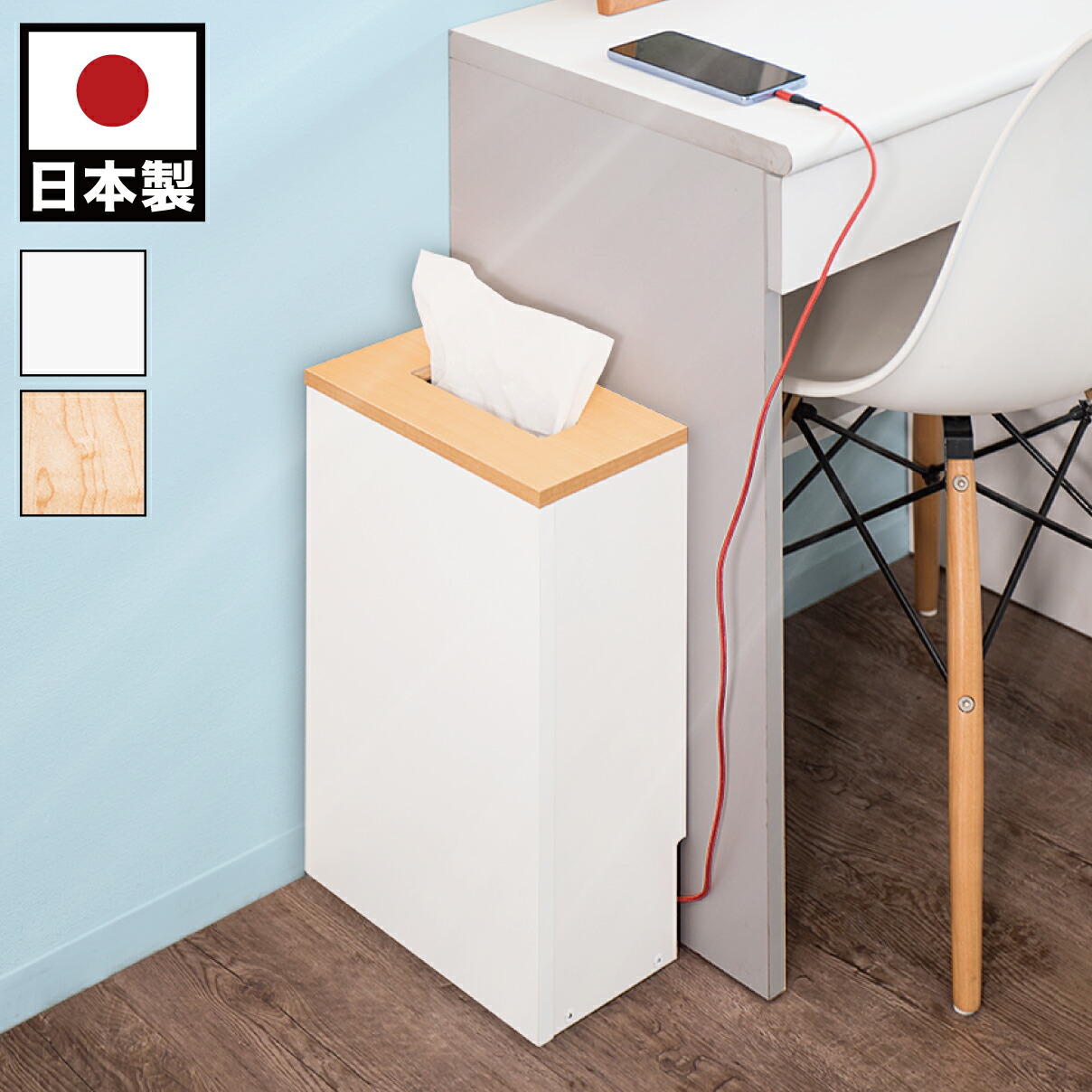■サイドテーブル オフィス収納 ケーブル収納 コンセント収納 日本製 ハイタイプ ティッシュケース 壁面 ティッシュストッカー 床置き 壁面