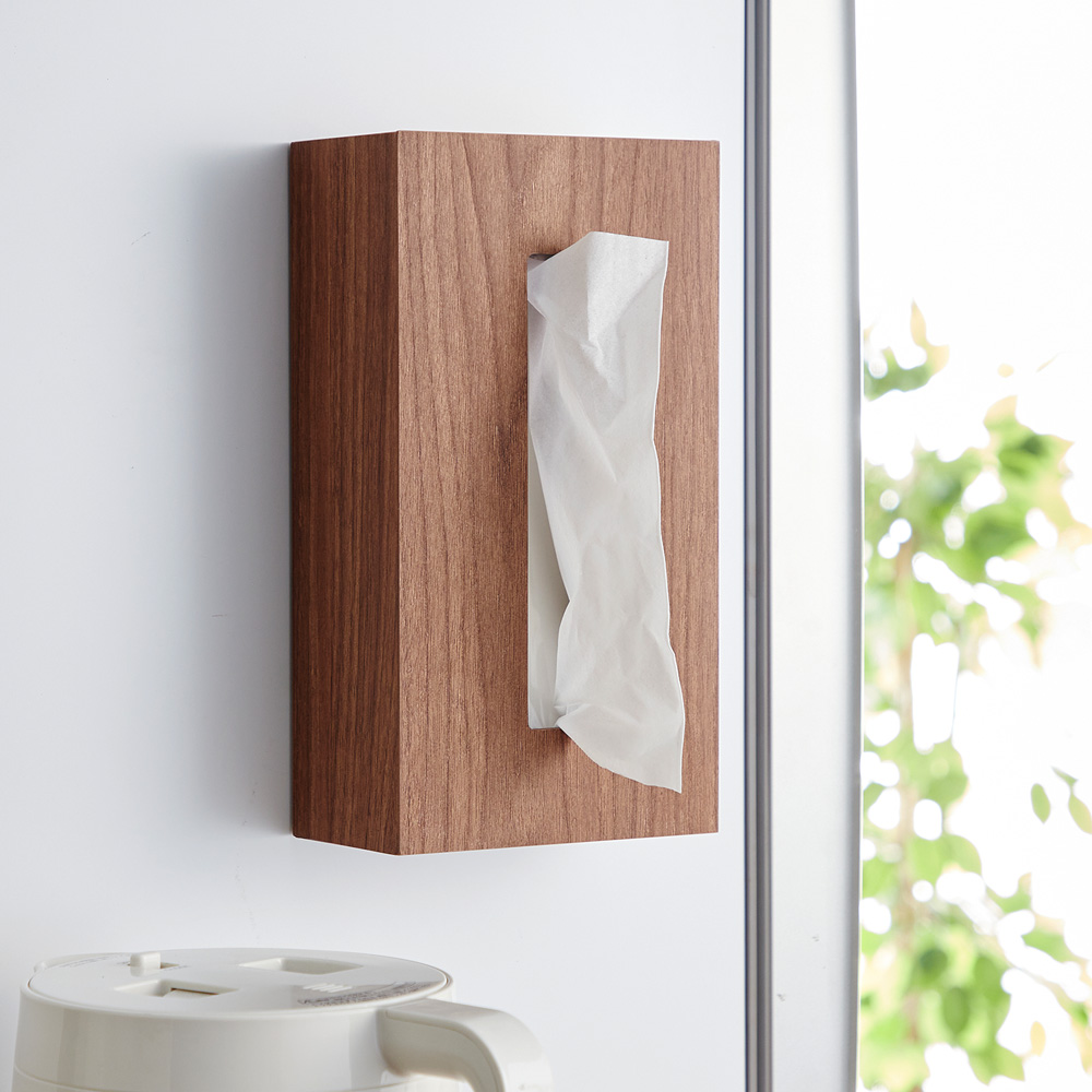 ティッシュペーパー、キッチンペーパー、箱入りポリ袋など、同形状の消耗品入れマグネット付きで縦横自在に貼り付けて使えます木目調で高級感もしっかりシンプルでモダンなフォルム一般的なティッシュボックスやソフトパックティッシュの詰め替えが可能です