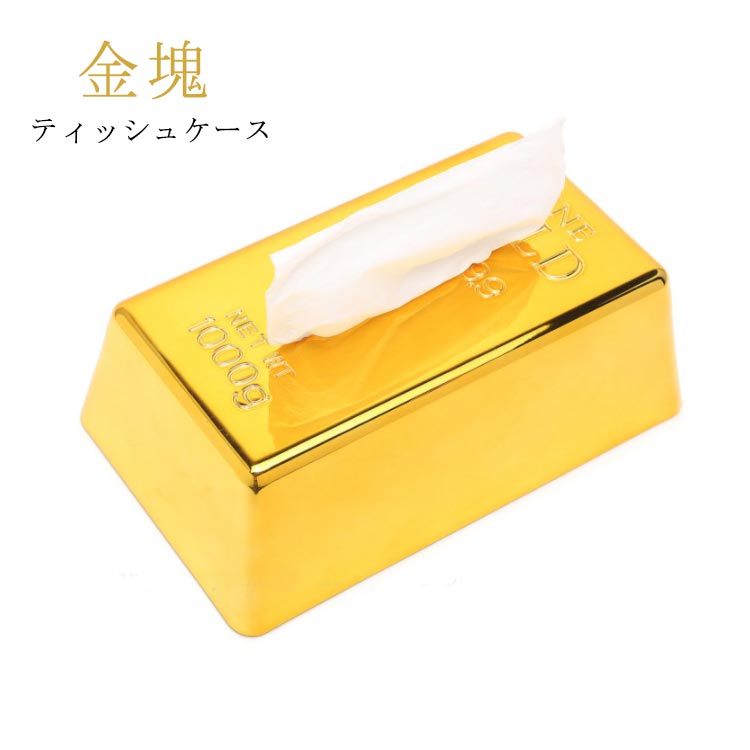 ■金塊 ティッシュケース ティッシュカバー ティッシュボックス ティッシュBOX ゴールド 金色 ティッシュボックスケース ゴールドバー おも