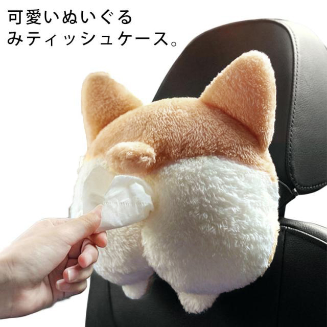 ■車内 ティッシュケース ティッシュカバー コーギー 車用 ティッシュホルダー ティッシュポーチ 車載 ぬいぐるみ ティッシュボックス ヘッ
