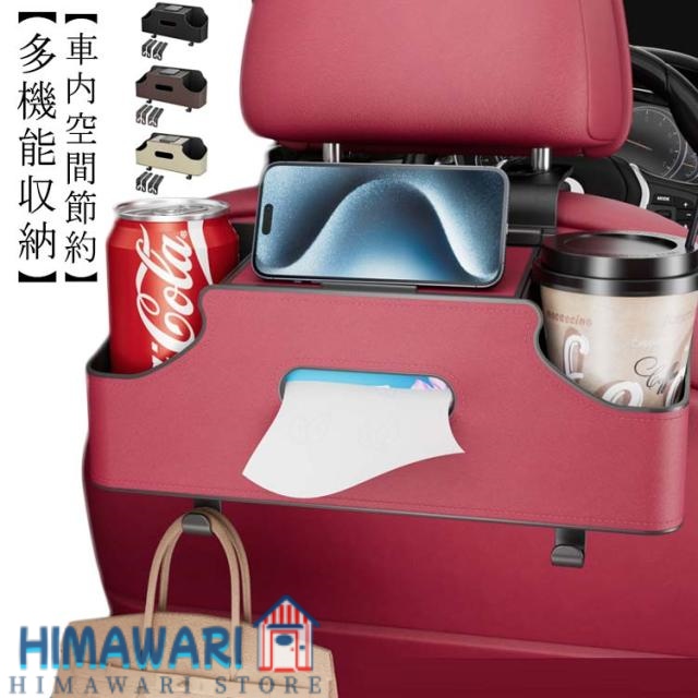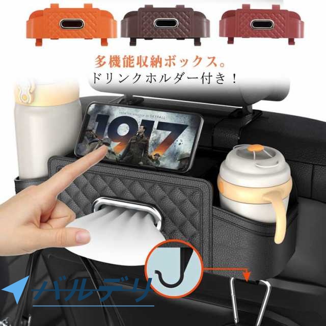 ドリンクホルダー2個付き ティッシュボックス 車内整頓 ボックス スマホスタンド ドリンクカップホルダー 荷物掛け ティッシュケース フック 車中泊 便利グッズ 車の後部座席 車の後部座席 取り付け簡単 後部座席用 旅行用 収納ケース 車用品 カー用品
