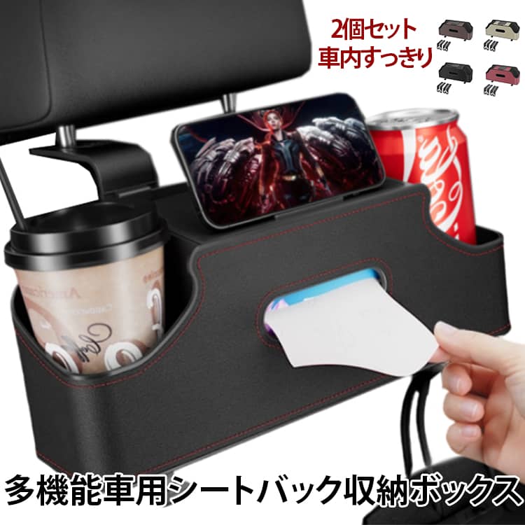 ■車 収納 2個入り 後部座席 車内 収納ボックス 多機能 ティッシュケース ティッシュ箱をそのまま入れられる 車 車載 おしゃれ カー用品 ド