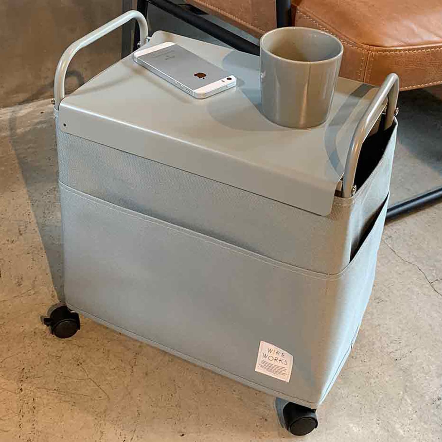■山善 サイドテーブル キャスター付き (ティッシュケース / A4対応 収納ボックス / サイドポケット5か所) マグネット対応天板 WIRE WOR