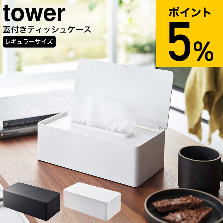 ■tower 山崎実業 蓋付きティッシュケース タワー レギュラーサイズ ホワイト ブラック 5720 5721 ティッシュケース ペーパータオルホルダ
