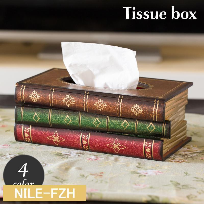 ティッシュケース ティッシュボックス 本型デザイン レトロ 木製 アンティーク調 ブック型モチーフ おしゃれ スタイリッシュ インテリア雑貨 ギフト