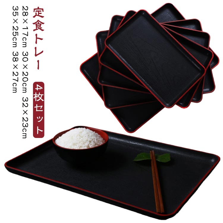 ■カフェトレイ 【4枚セット】 トレー お盆 高級 【4枚セット】 トレイ 定食トレー 赤 来客用 黒 お盆トレイ 運び盆 家庭用 和風 和 和食器