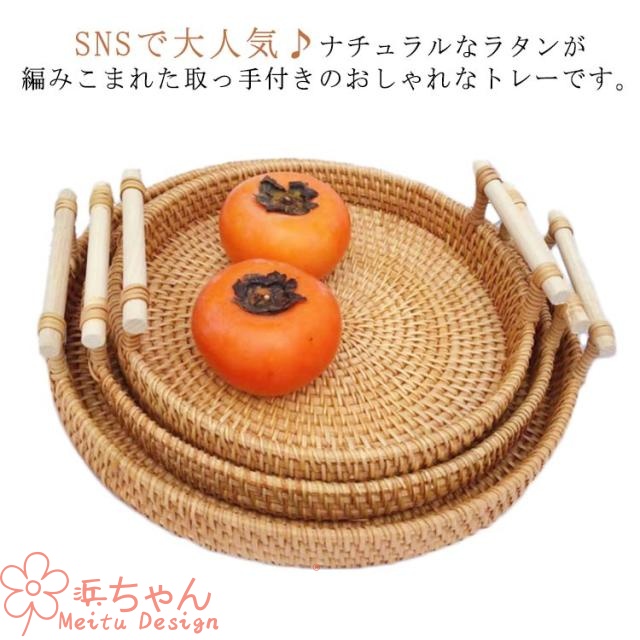 ラタントレイ トレイ 28cm 22cm カフェ ハンドル付き トレー 北欧 お家カフェ お盆おぼん バスケット 丸型 手織り ディスプレイトレイ おしゃれ 24cm 韓国雑貨 果物バスケット お菓子トレー 籐 ナチュラル ラタントレー