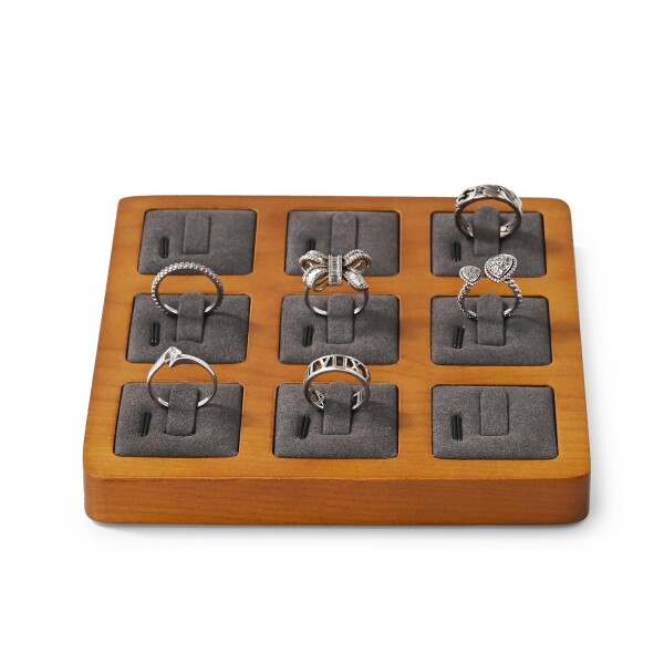 ■Oirlv 指輪 トレイ 木製 リングトレイ 9枚 ディスプレイ 収納 高級 おしゃれ ジュエリートレイ SM02502 (ダークグレー)
