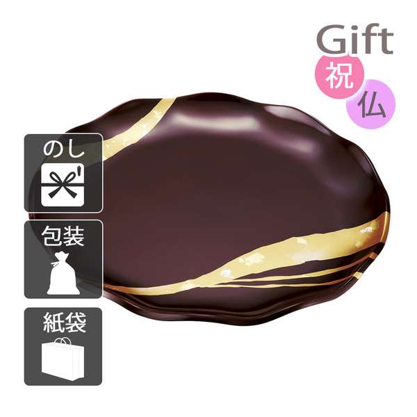 ■内祝い 快気祝い 出産祝い 結婚祝い お盆 トレイ 純金箔工芸 溜塗 金彩 なごみトレー