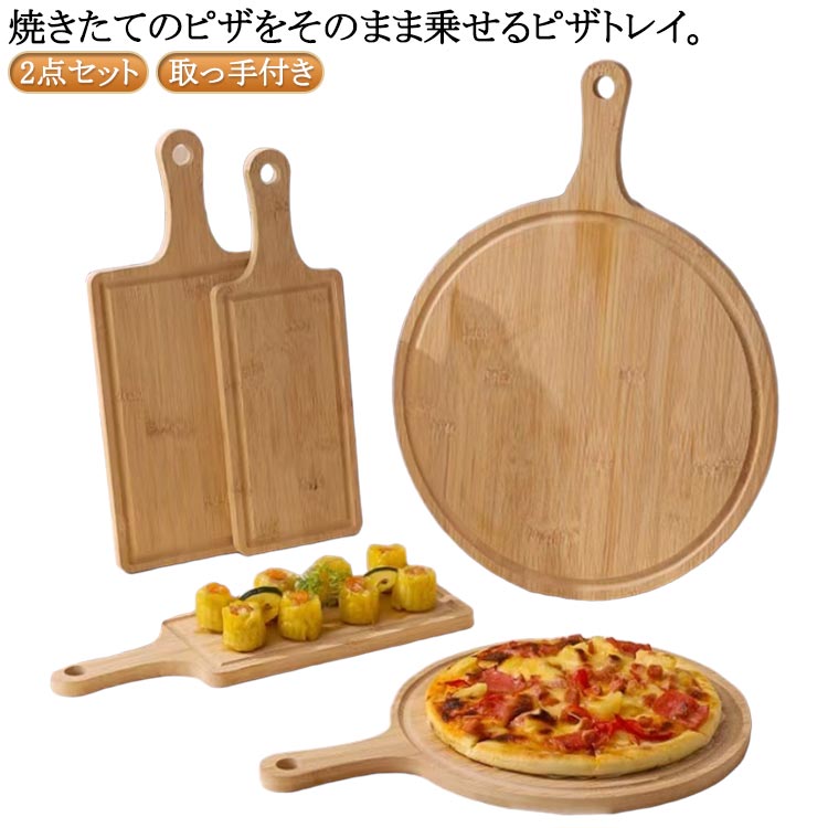 ■ピザ用トレー トレイ ピザボード ピザピール 丸まな板 来客用 カッティングボード お皿 2点セット サービングボード 取っ手付き 木製 角