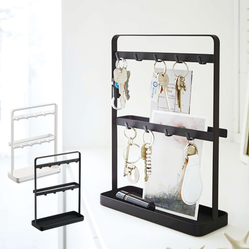 キーフックが2段付いたスタンド。ハンコや小物も置けます。フックの数が多いので事務所や会社、業務用としても◎。ハガキなども収納できます。