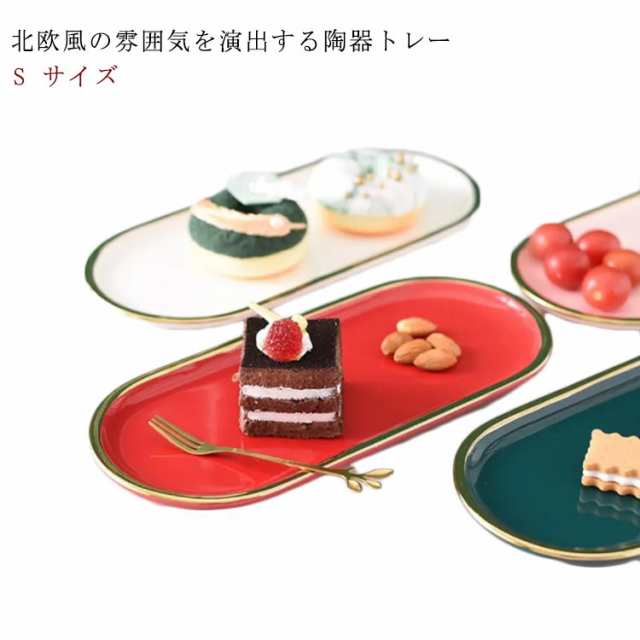 ■【Sサイズ 長26.6*幅12*高1.3cm】陶器 皿 フプレート 磁器 お皿 おしゃれ 北欧風 トレー 小物 収納 アクセサリー トレー 北欧 トレイ 小