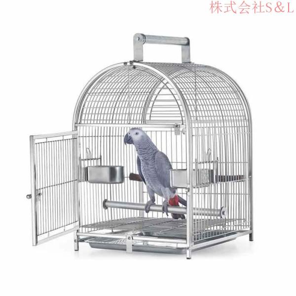 ■オウム ステンレス鋼 鳥用キャリーかご 中型のオウムに適しています トレイ、フードカップ2個 株式会社S&Lスタンディングスティック2本