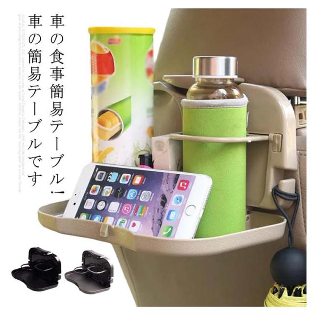 車の食事簡易テーブル! リアトレイ シートトレイ 車 簡易テーブル 車載用 テーブル トレイ ドリンクホルダー コンパクト 車 スタンド 便利 グッズ 車用品 運転席 後部座席 後部座席用 車内用 汎用 折りたたみ ドライブ 食事 飲み物 缶 ペットボトル スマホ i Phone 便利
