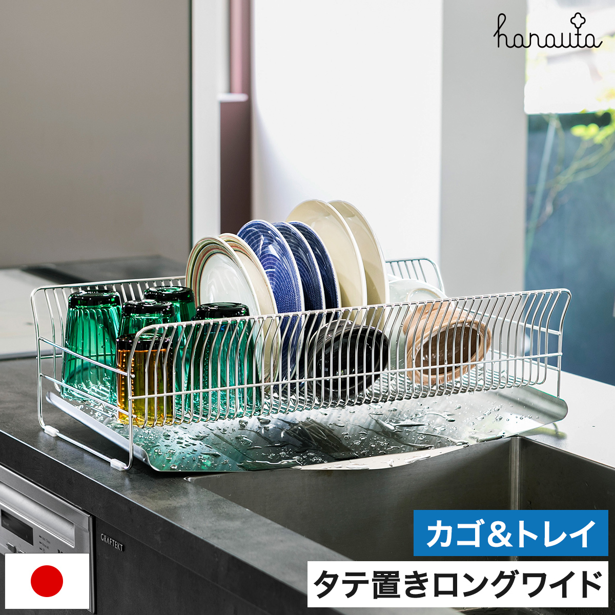 ■[ hanauta 水切りラック 縦置きロングワイド カゴ&トレイ(箸立て無し) ]ハナウタ 水切り 水切りラック 水切りカゴ 水切りかご ディ