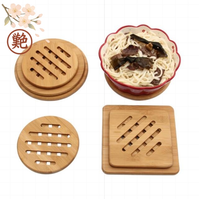 ■北欧 プレースマット 断熱パッド 鍋敷 鍋しき 鍋敷き 鍋敷き 収納スタンド キッチン キッチン雑貨 トレイ 天然木 コースター 竹製 ギフト