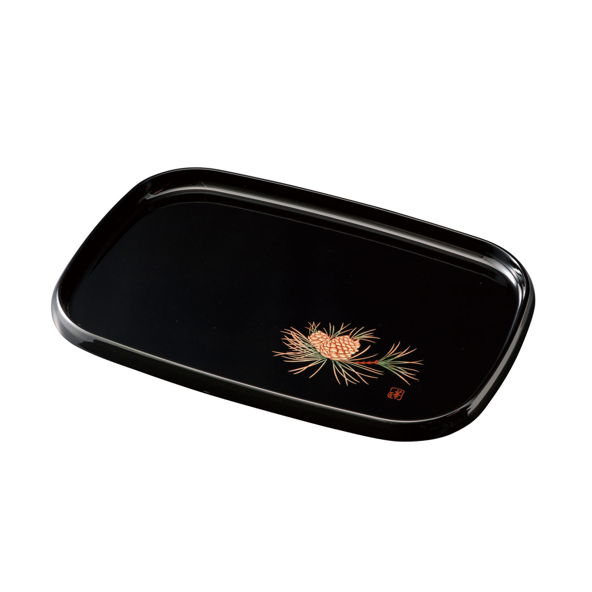 お盆の産地として有名な「紀州漆器」の美しいトレーです。上品で美しいデザインは使用するひと時にパッと華を添えてくれます。実用性はもちろん、お祝い、内祝いなど贈り物にも喜ばれます。紀州塗り(紀州漆器)は室町時代の始まりであると伝えられています。その塗物技法は優れた漆工たちに引き継がれて、昭和53年に通産省より伝統的工芸品の指定を受けております。美しく、丈夫で使いやすい『ぬりもの』としてご愛用を頂いております。どうか麗しいぬりもののよさを充分味わって下さい。■サイズ(約) 39×27×高さ2cm■材質 ユリア樹脂■塗装の種類 カシュー塗装紀州塗り お盆 トレー 13寸 長手盆 黒 高野槇 茶盆 おしゃれ おぼん トレイ 和風 和モダン 飾り 日本製 国産