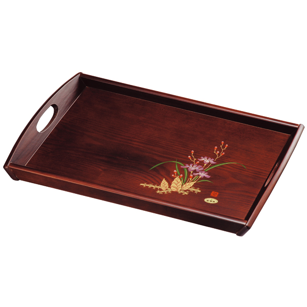 ■紀州塗り 尺5寸 舟型 長手盆 黒檀杢 山路(盛絵) お盆 トレー トレイ おぼん 日本製 国産 k_name