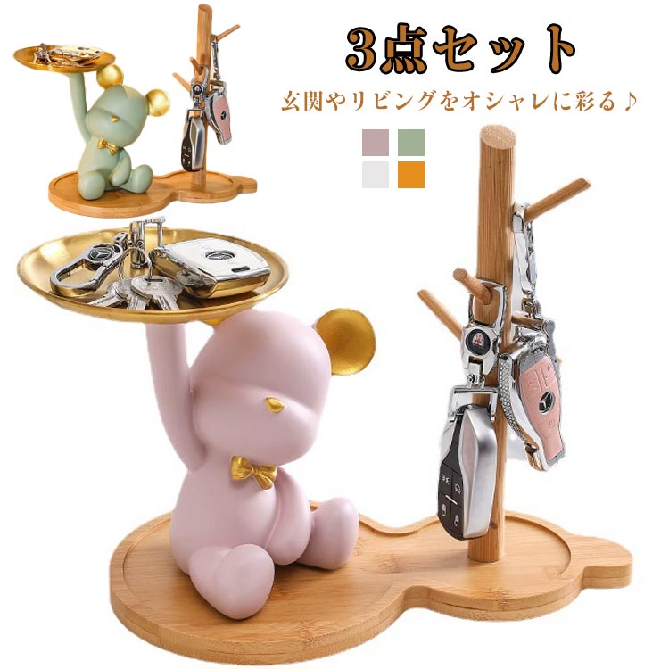 ■玄関収納 鍵掛け キーツリー アクセサリースタンド 鍵掛け 熊 木製 トレイ キースタンド キーフック 鍵置き場 くま 可愛い 眼鏡掛け キー