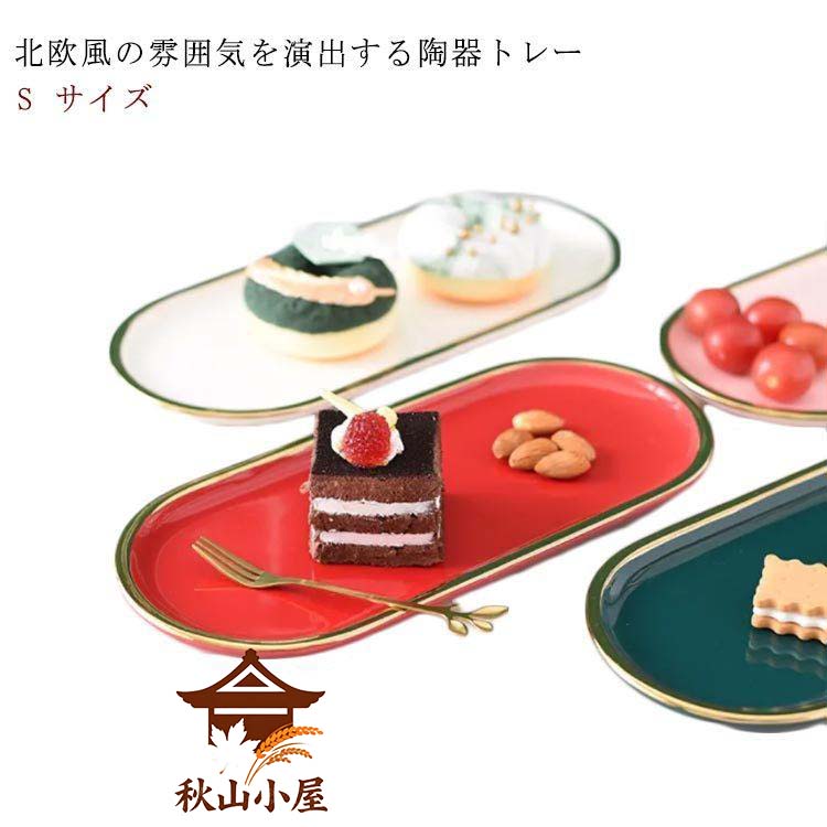 エレガント 磁器 トレイ トレー 長26.6*幅12*高1.3cm】陶器 フェミニン おしゃれ 北欧風 フプレート 小物 収納 アクセサリー トレー