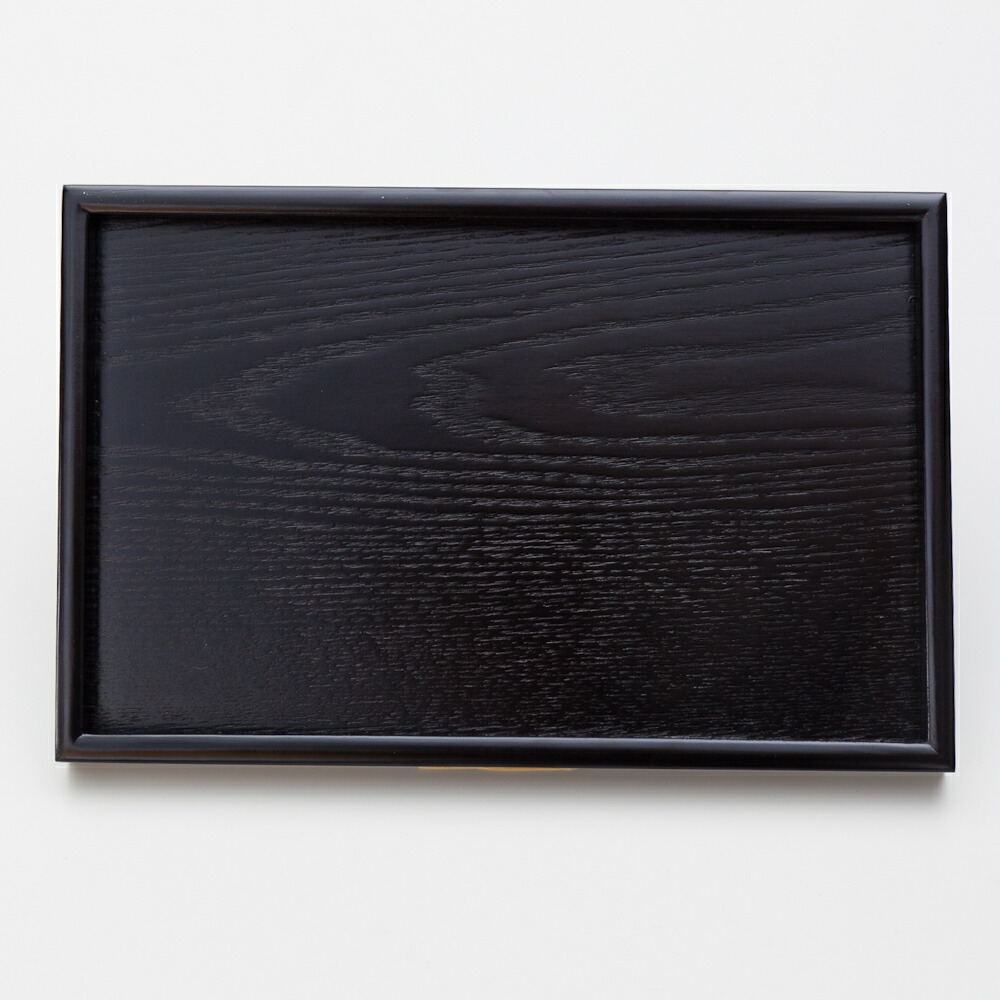 ■天然木製 9.5寸 小長盆 黒木目 漆塗り 28.5cm お盆 トレー トレイ おぼん